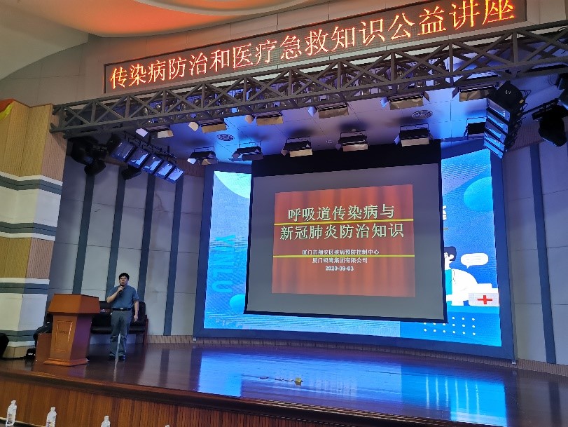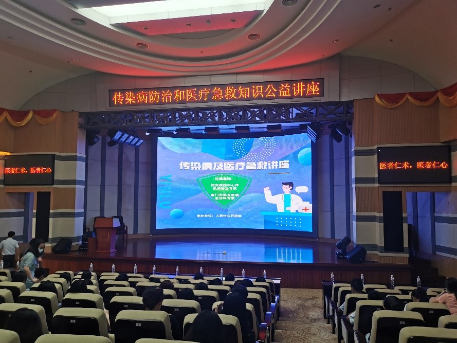 讲座于9月2日下午在总部3F大礼堂进行,,,翔安区疾控中心传染病防治专家叶医师、、厦门市第五医院急诊科张护士及其团队为大家授课。。。